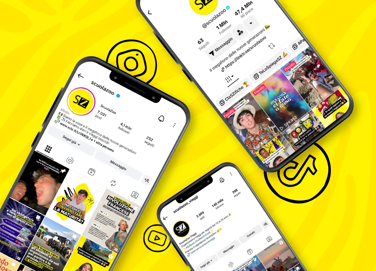 Il media network di Scuolazoo conta più di 7 milioni di follower ed è composto da: